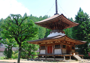 もとは現在地から西5町ほど下方にあったものが保廷6年(1140年)に移され、現在の建物は宝水2年(1705年)の再建で、山岳仏教を表わす堂々たる風格をたたえ、両脇では金剛力士像がにらみを利かせています。また高野山指定建造物に指定され、大工さんが建築技法を見学に来たりもしています。